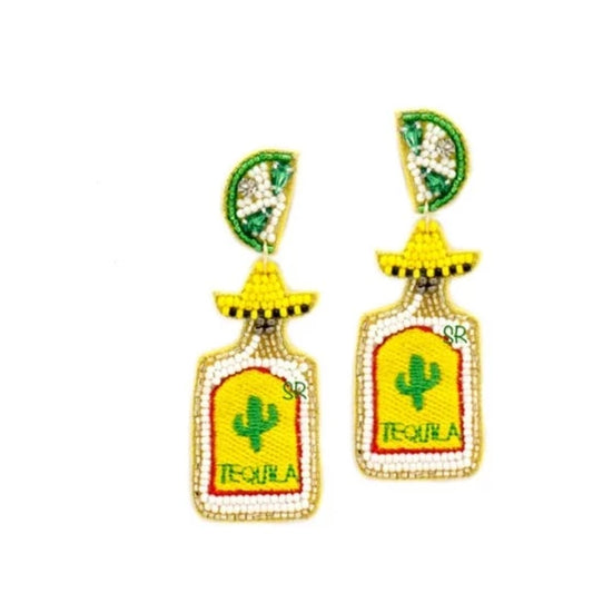 Cactus Tequila w/Lime Bottle Earrings
