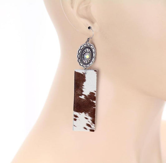 Rectangle Cow Leather with Concho Dangle Earrings