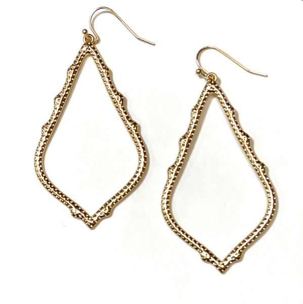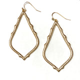 Girls kept secret earrings have a stunning Moroccan shape and will add a gorgeous exotic flair to your style all year long. They plated over brass and 2.75 inches in length and 1.875 inches in width on an ear wire hook.