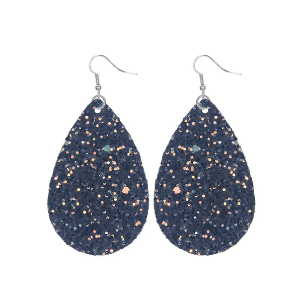 These fashionable teardrop earrings featuring black and silver glitter are perfect for any ensemble! Constructed with silver-tinted hardware and a fabric-based material, the fish-hook style is 2.85" in length and has a 3.25" drop. Lead and nickel-free, variations in design, scale, and quantity are possible.