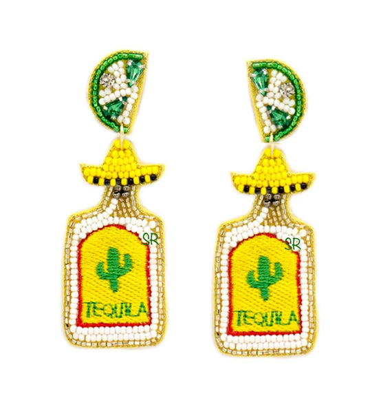 Cactus Tequila Bottle Earrings: Perfect 3 1/4 inch length! Lime & Sombrero top off these fun earrings! They are lightweight, post-back, with soft felt backing!