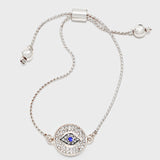 Adjustable for a feel-right fit, this friendship bracelet has simulated diamonds to dazzle up the evil eye design.