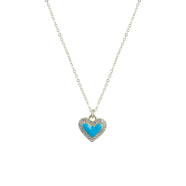 This necklace is a perfect symbol of love, with its stunning rhinestones surrounding a hot pink heart-shaped charm. Adorned on a gold-tone chain, it is available in a Goldtone Charm in Hot Pink/Turq/Blue with a Pink mix (while supplies last). The chain measures 16 inches with a 3 inch extension and is beautifully embellished with mini rhinestones.