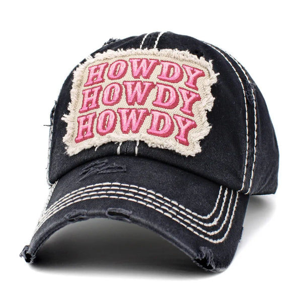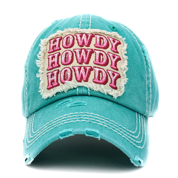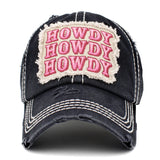 "Howdy, Howdy, Howdy" Embroidered Distressed Vintage Style, Baseball Cap.