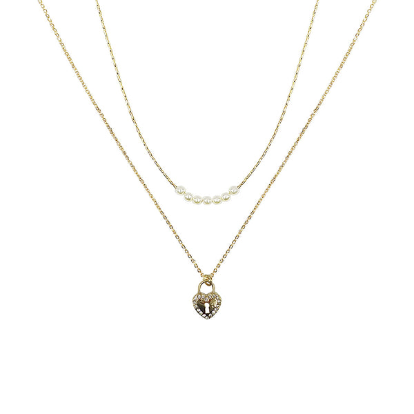 Give this necklace to show how much you love her with these beautiful rhinestones around the locket, pearls on the shorter layer necklace, and gold-tone necklaces.