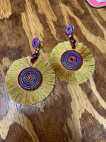 Round post earrings with fringe, beads and colored boxed chain to add color accent.