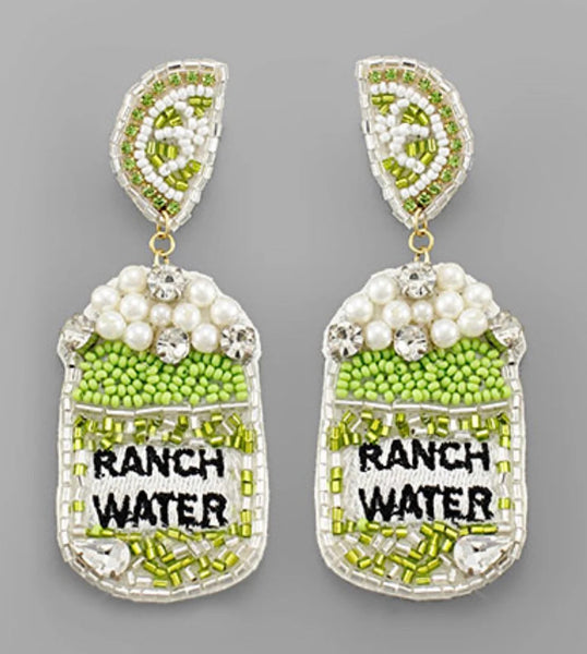 The Texas Classic we all need every once in a while. Rock these shimmering Ranch Water earrings to your next hoedown. Earrings featuring beading, sewn-in details, and a postback.