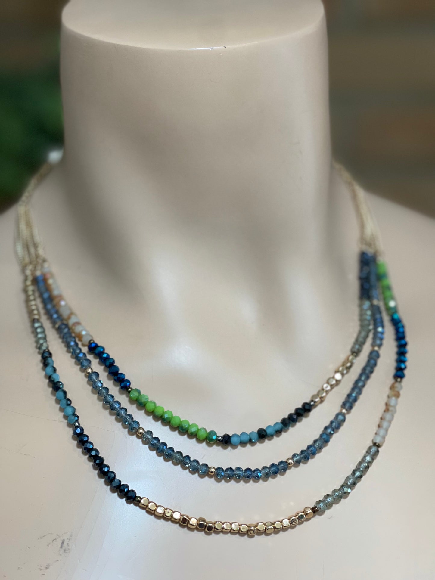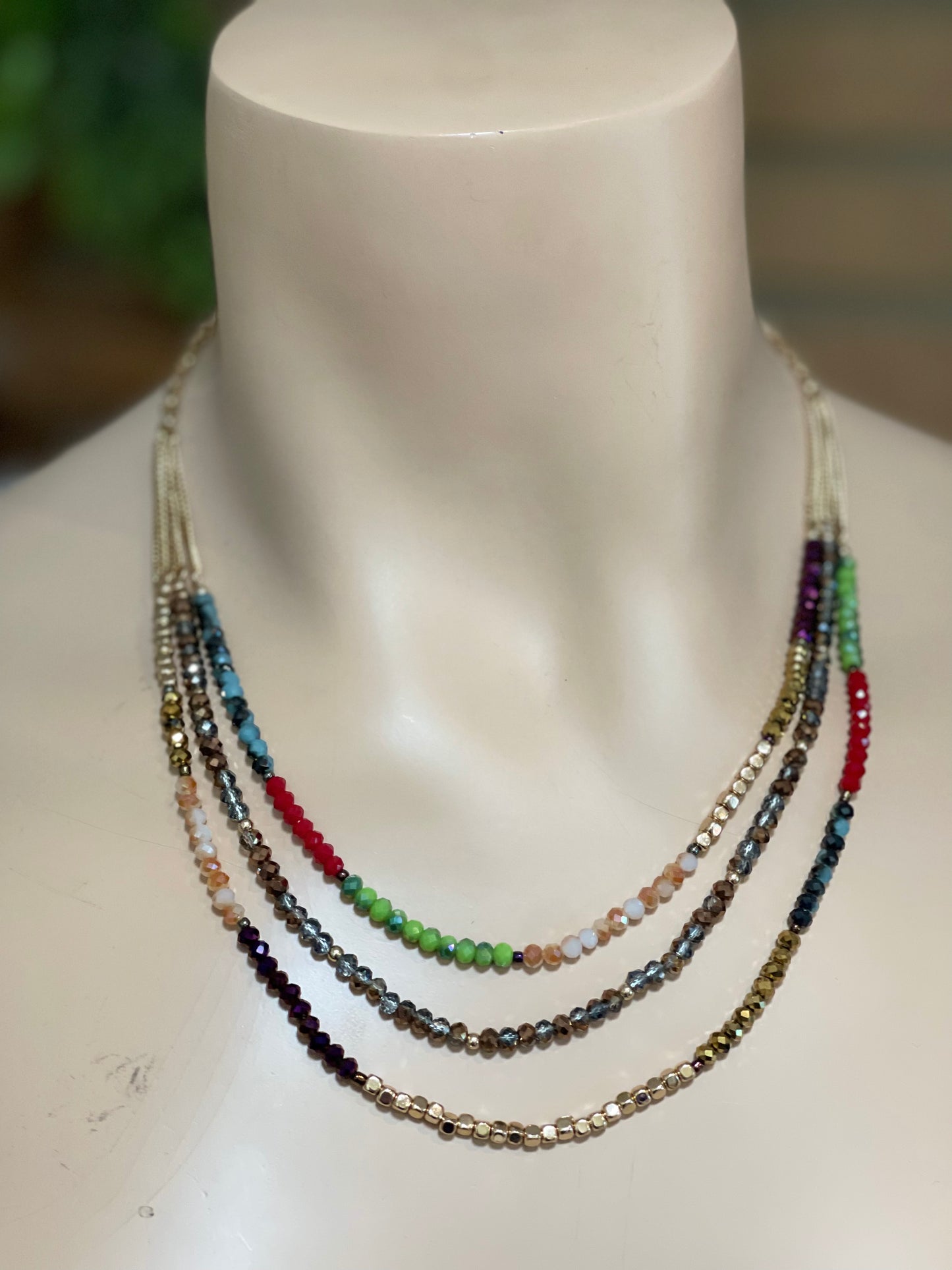 Gorgeous 3-layered beaded necklace with multi-colored stone tones no matter which ones you choose. These will surely brighten up any look and make you look even more fabulous.