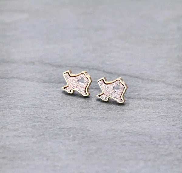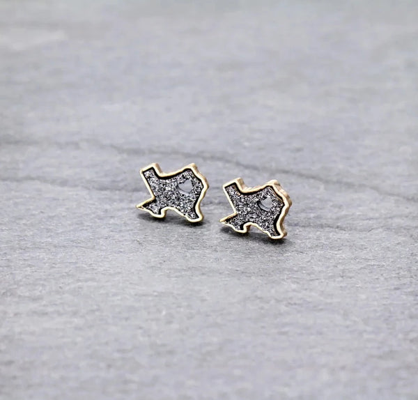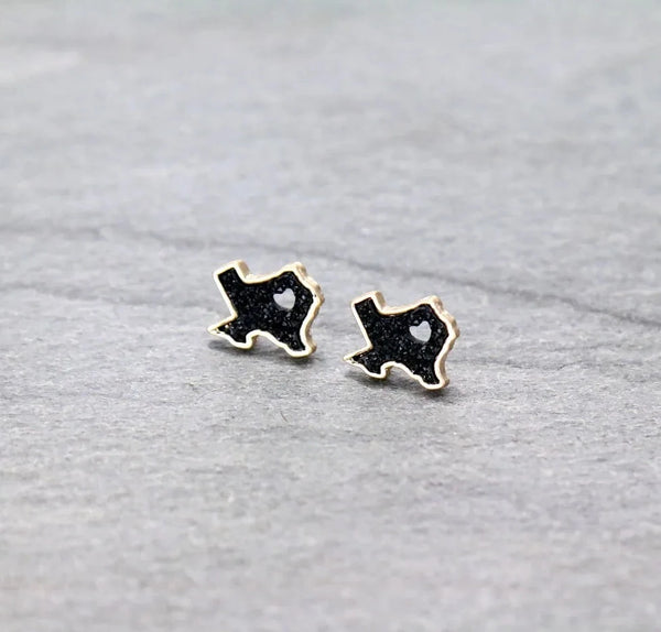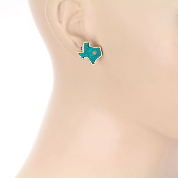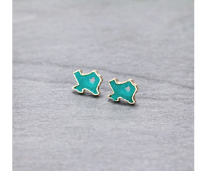 Druzy raw stone Texas earrings, pair with your favorite jeans and Texas tee to finish off your look. Heart Cutout Druzy Stone Texas Map Stud Earrings