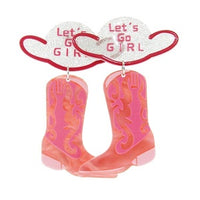 Post stud glitter resin lets go girls cowboy boot earrings.