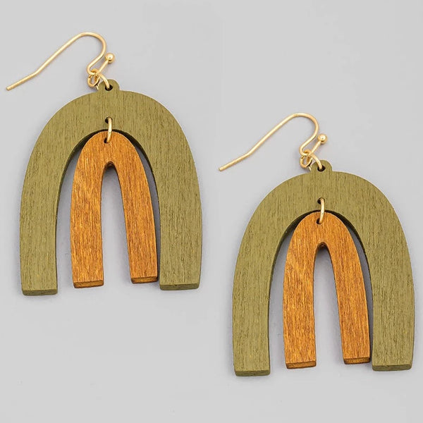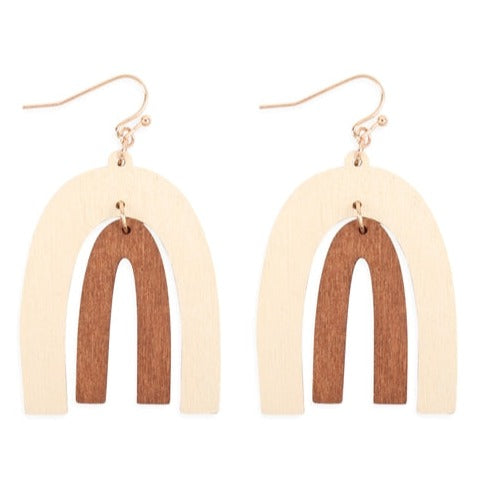 An amazing trending pair of earrings features a beautiful layered u shape wood drop earrings design. Perfect for the summer season!