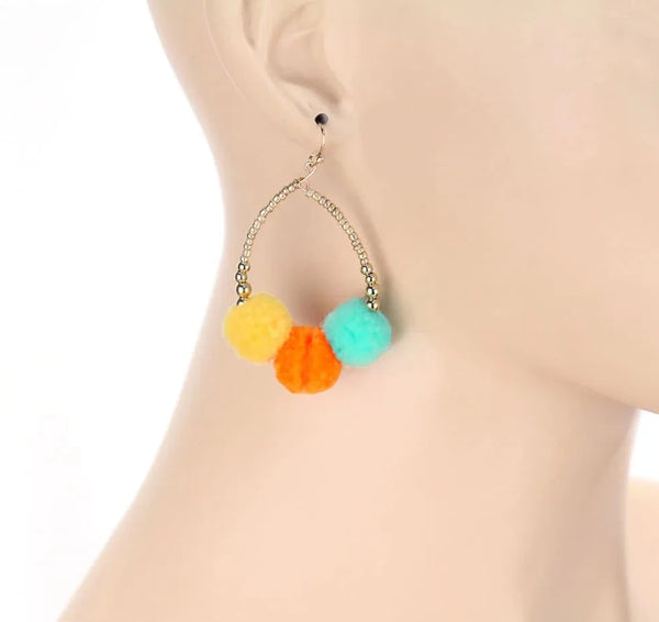 Multi Color Pom Pom Earrings