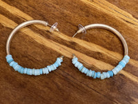 Antique gold hallowed hoops with rounded beads of turquoise.