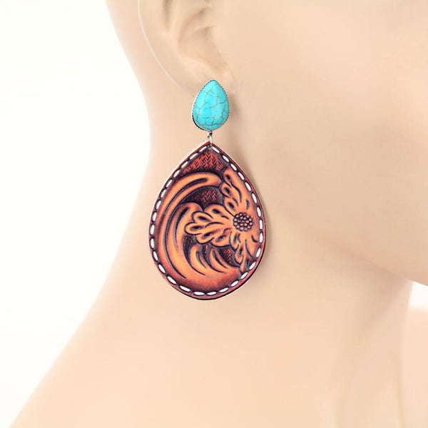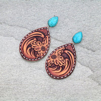 Wave Floral Teardrop Leather Stud Earrings